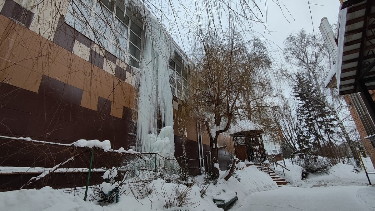 Администрация не замечает? На спортшколе в тульском Заречье образовался «ледяной водопад»