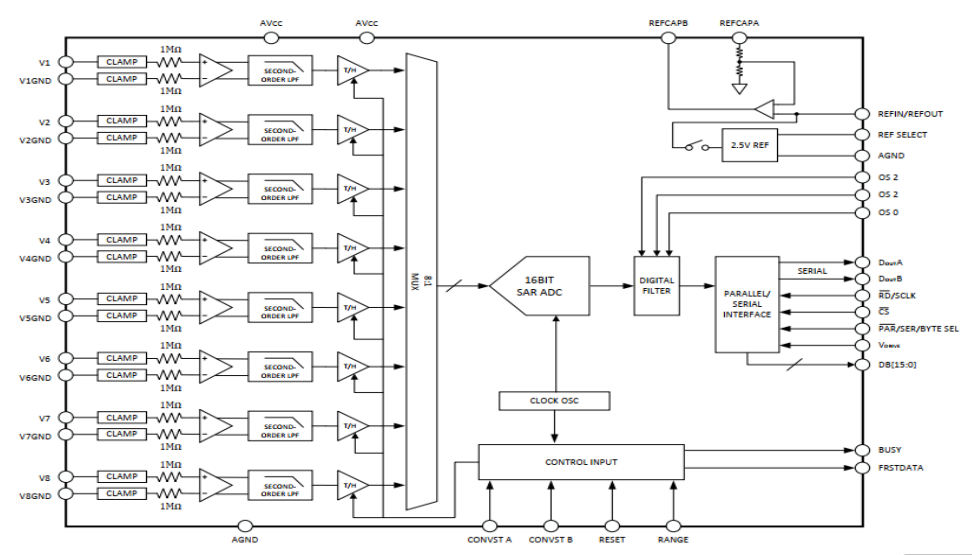 Protis Electronic Limited : XHT7606 , 8-канальный DAS с встроенным 16-битным биполярным синхронным АDC (Альтернатива AD7606)