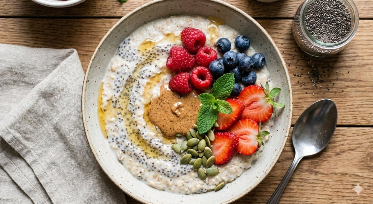 Овсянка с чиа и ягодами: простой рецепт с клетчаткой 🌾🥣 (12 г/порция