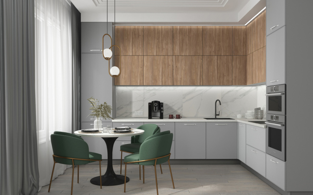 «За последние два года мы заметили рост запросов на угловой гарнитур с интегрированной мойкой в углу и системами хранения типа “карусель”. Особенно популярны решения с плавными формами — они мягко вписываются в интерьер и снижают риск травм. Для маленьких квартир мы рекомендуем вертикальные колонны вместо верхних шкафов — это сохраняет свет и визуально расширяет пространство», — комментируют дизайнеры MIXX.