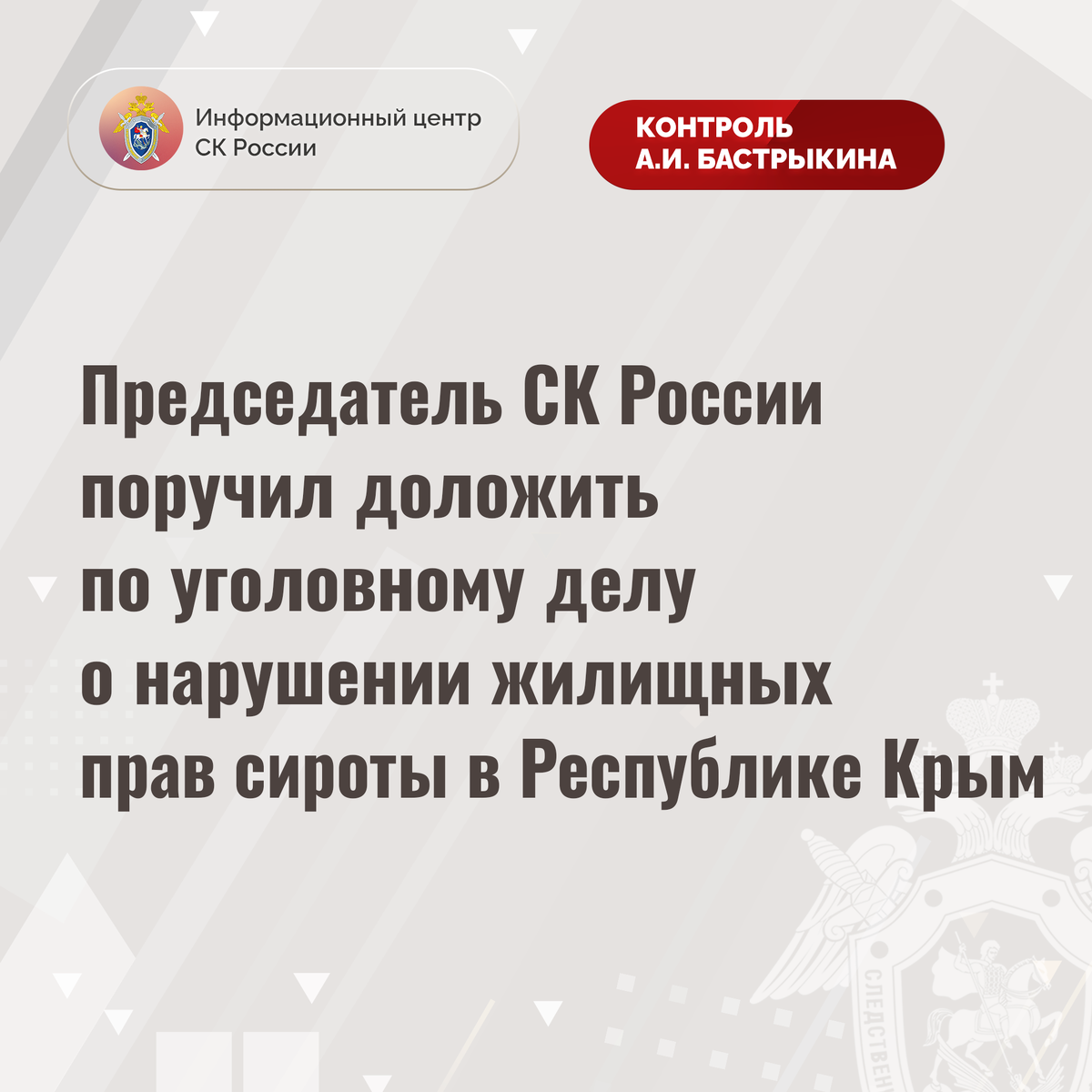 Председатель СК России поручил доложить по уголовному делу о нарушении жилищных прав сироты в Республике Крым