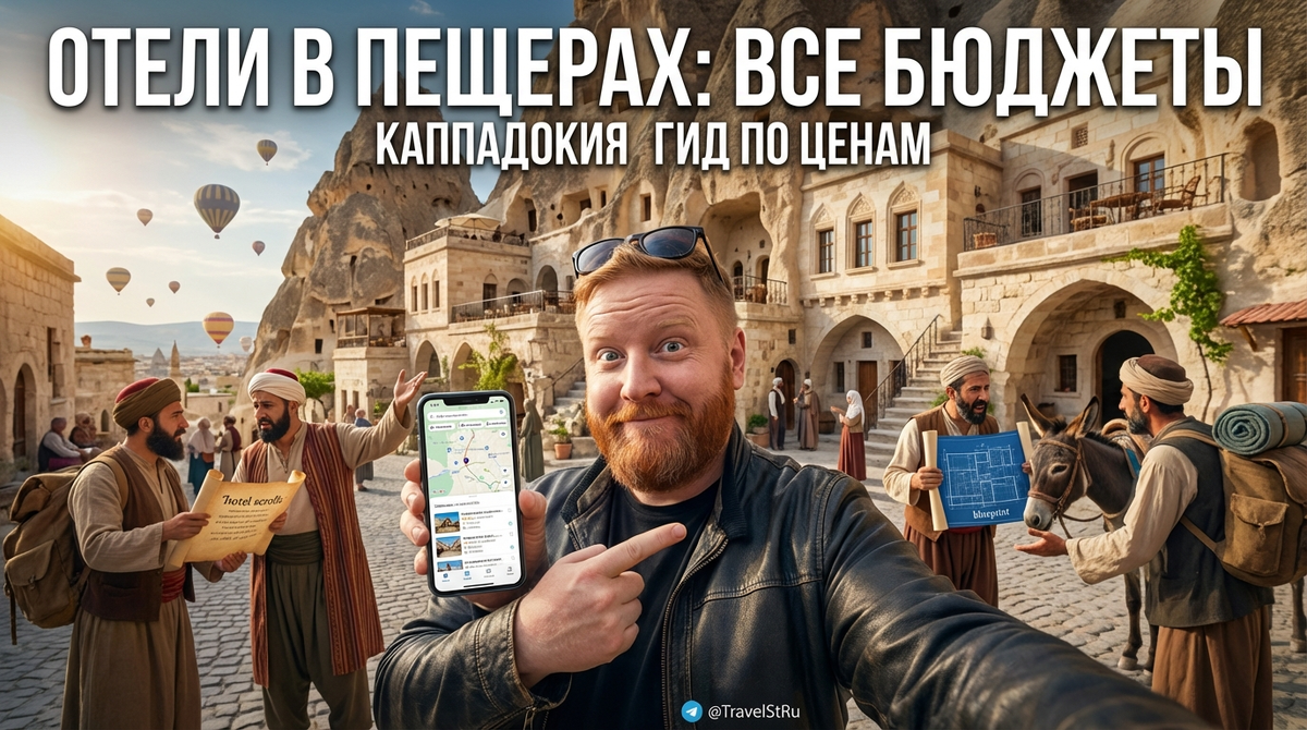 Первое утро в Каппадокии обычно начинается одинаково: ты ещё толком не проснулся, а в окно уже лезет розовый свет и чей-то шар (в смысле воздушный) медленно проплывает над крышей. В этот момент мозг делает паузу и честно признаётся: да, мы ночуем внутри скалы. Не в переносном смысле, а буквально. Каменные стены прохладные на ощупь, воздух будто плотнее, тишина странная, как в старом подвале у бабушки, только без запаха картошки. И вот ты сидишь на краю кровати и думаешь: а где остановиться в Каппадокии так, чтобы было атмосферно, удобно и без ощущения, что тебя сейчас законсервируют до весны.