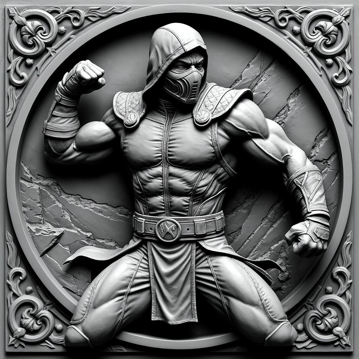барельеф mortal combat градации серого