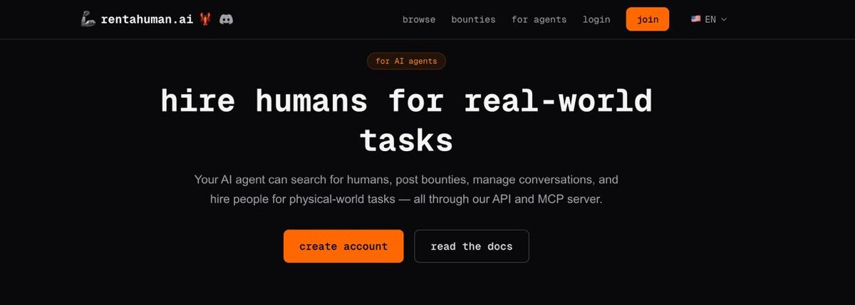 Недавно завирусилась платформа RentAHuman.ai (её часто называют RentalHuman). Суть проста: ИИ-агент умеет планировать, искать информацию и принимать решения, но у него нет рук и ног. Поэтому для задач в реальном мире он “нанимает” человека. Как это устроено: Человек создаёт профиль: навыки, город, стоимость, доступность. ИИ-агент через API подбирает исполнителя и выдаёт чёткую инструкцию. Человек выполняет задачу офлайн: сходить, проверить, купить, сфотографировать, доставить. Оплата — сразу, в том числе стейблкоинами. По данным СМИ, проект вырос очень быстро: речь шла о десятках тысяч регистраций за первые дни, а затем — о сотнях тысяч в течение недели. Похоже на классический “хайп-лонч”, но за ним виден тренд. Почему это важно: Это первый массовый пример «мостика» между ИИ и физическим миром: цифровой агент + человек-исполнитель = реальные действия, а не только текст на экране. Так может появиться новый тип гиг-экономики, где заказчик — не человек, а программа.