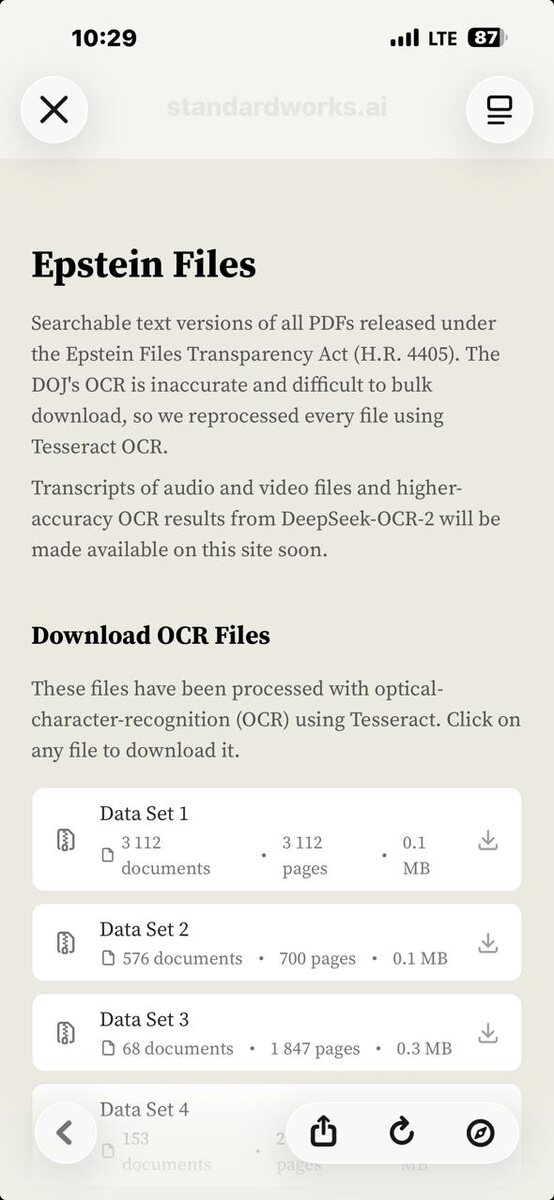 Текстовая версия файлов Эпштейна. Вот здесь. Можно скачать, закинуть в ИИ и наслаждаться выжимками :) Но учтите - большой обьем.