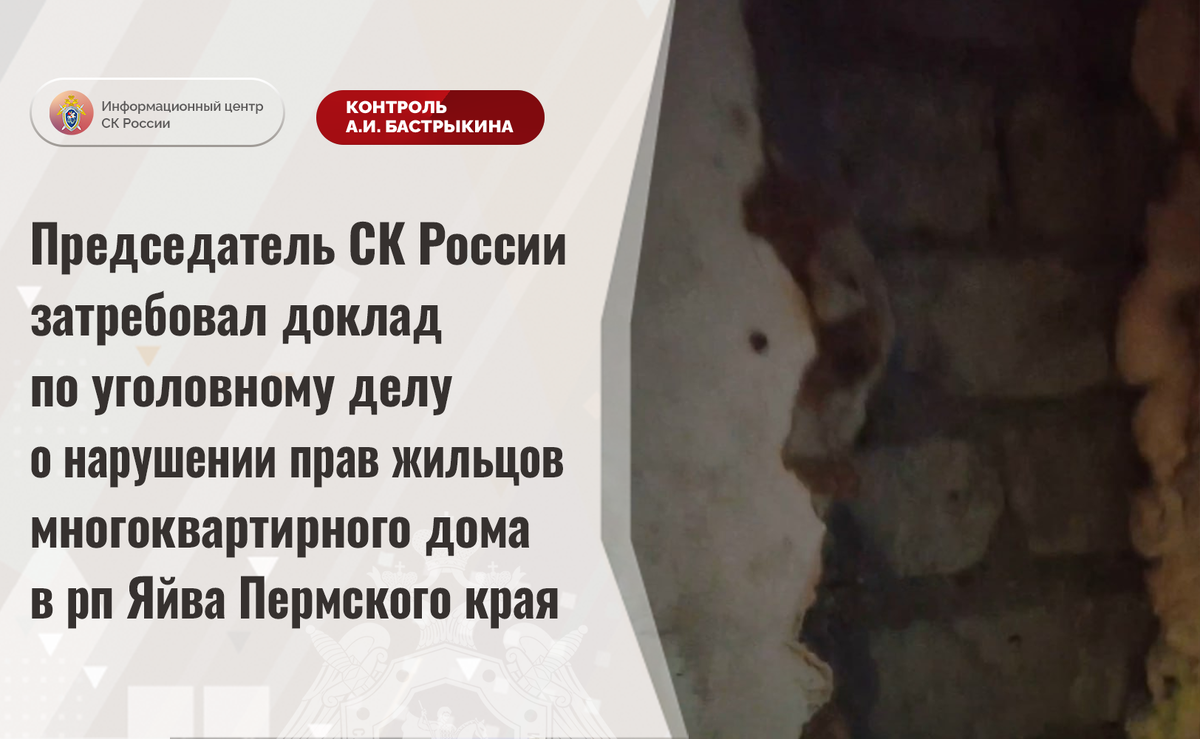 Председатель СК России затребовал доклад по уголовному делу о нарушении прав жильцов многоквартирного дома в рп Яйва Пермского края
