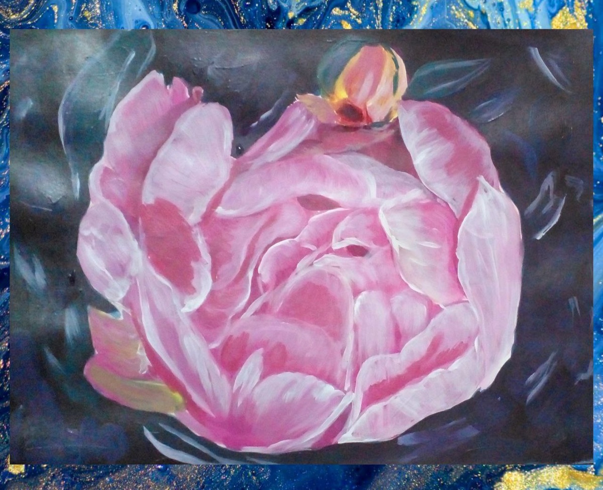 В эти холодные зимние дни кисти и краски создадут лето на холсте, и летнее тепло как будто войдет в Ваш дом, преобразив интерьер и подарив хорошее настроение. Говорят, что пионы - это летние цветы, которые цветут в самое теплое время года. Ну а в зимние холода интерьерные картины с пионами, созданные своими руками, радуют взор и согревают душу. Зимой пионы как будто расцветают на холсте – настоящая волшебница Александра Озерова научит создавать красивейшие цветы и облагородить свой дом. За два с половиной года обучения с Александрой я не пропустила ни один марафон, и всегда нахожу для себя много нового. Для меня это фантазийный мир цветов и живописи. Сейчас я обучаюсь на курсе школы «БОЛЬШИЕ ПИОНЫ», и начала с нуля, с основ рисования лепестков и смешения красок. Здесь моя первая работа с этого курса – розовый пион.