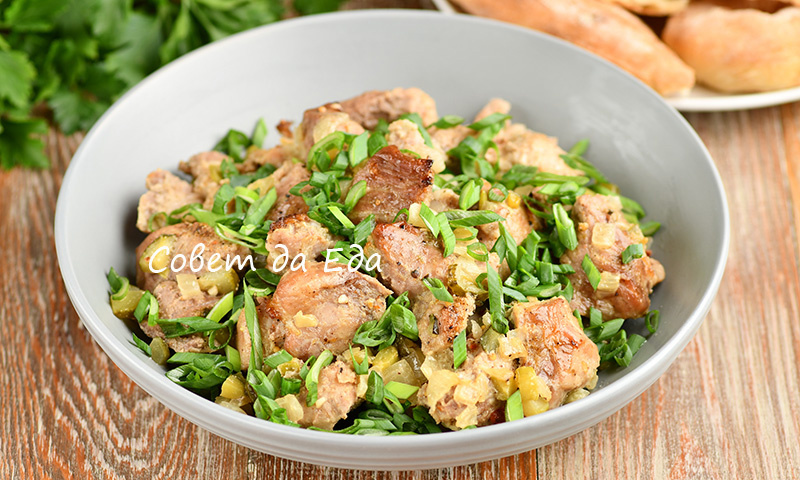 Блюдо с изюминкой во вкусе. Изюминку мясу дает один простой продукт. На подготовку уходит всего 10 минут, так как ничего предварительно обжаривать не надо. Просто закладываю все в сыром виде и получается очень нежное мясо, которое тает во рту. Порции 4 Время подготовки 10 минут Время приготовления 1,5 часа Ингредиенты Инструкции 1. Для приготовления можно брать свинину на косточках или мякоть (у меня окорок без костей). Нарезаем мясо на средние куски и выкладываем в миску. 2. Добавляем соль (немного), масло и специи (у меня ½ ч. л. хмели-сунели, ½ ч. л. смеси перцев, 1/3 ч. л. черного молотого перца и 1 ч. л. сушеного чеснока). Можно брать любые специи по вкусу. 3. Луковицу среднего размера и маринованные огурцы нарезаем кубиками. Огурцы дают интересный вкус (изюминка блюда). Вместо маринованных огурцов можно брать соленые огурцы. 4. Вливаем рассол и хорошо перемешиваем. 5. Свинину с овощами перекладываем в глиняный горшок (объем 2 литра). Можно использовать казан, жаровню. Закрываем к