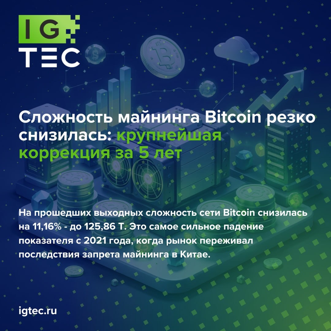 ⛏️📉Сложность майнинга Bitcoin резко снизилась: крупнейшая коррекция за 5 лет