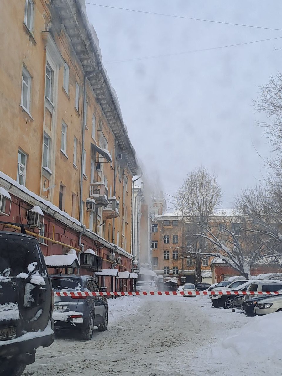 В Кемерове продолжается работа по очистке кровель от снежных шапок и наледи