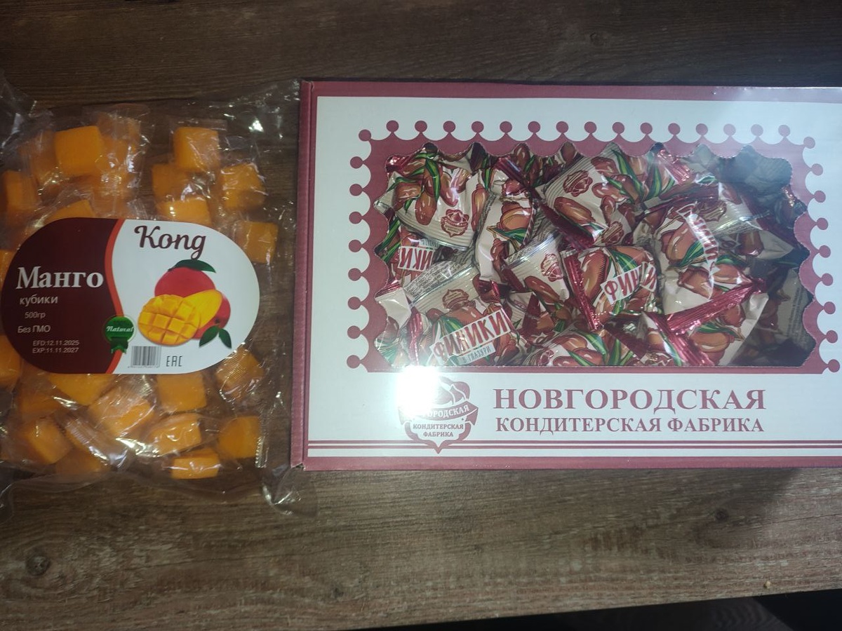 Получила сладости для детей. Упаковка манго обошлась в 120 рублей, финики в шоколаде по 280 р.
