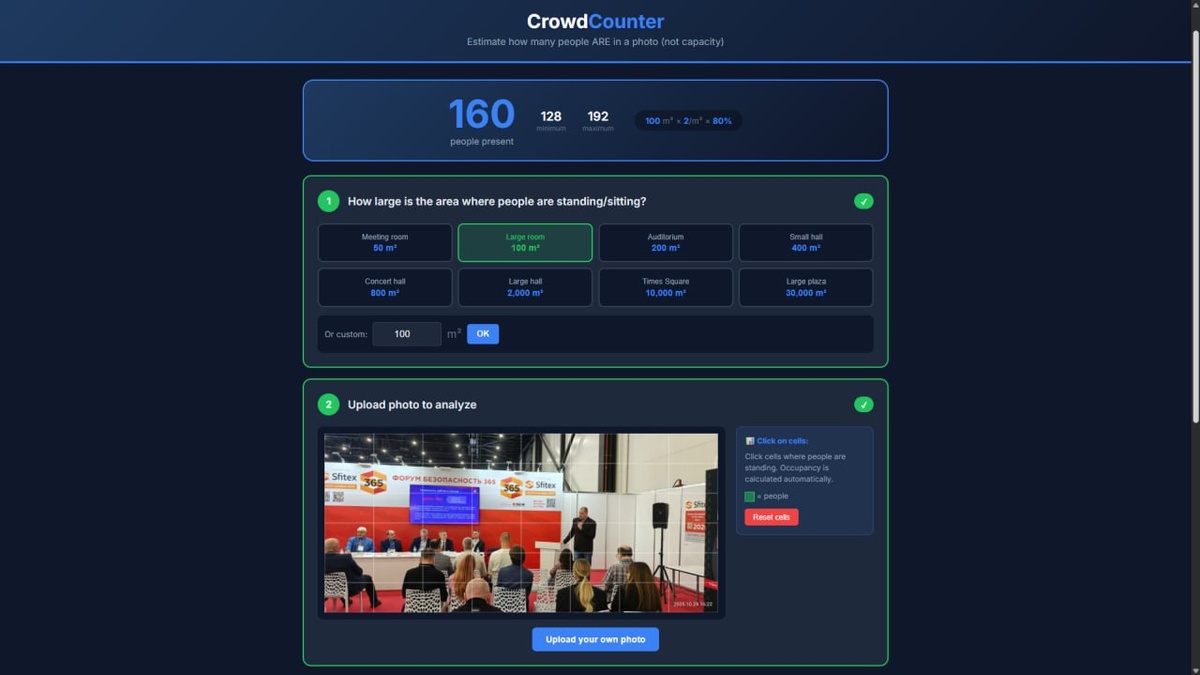 🔎CrowdCounter — инструмент для определения числа людей в помещении. Прекрасно дополнение к https://www.mapchecking.com/, но для помещений.
