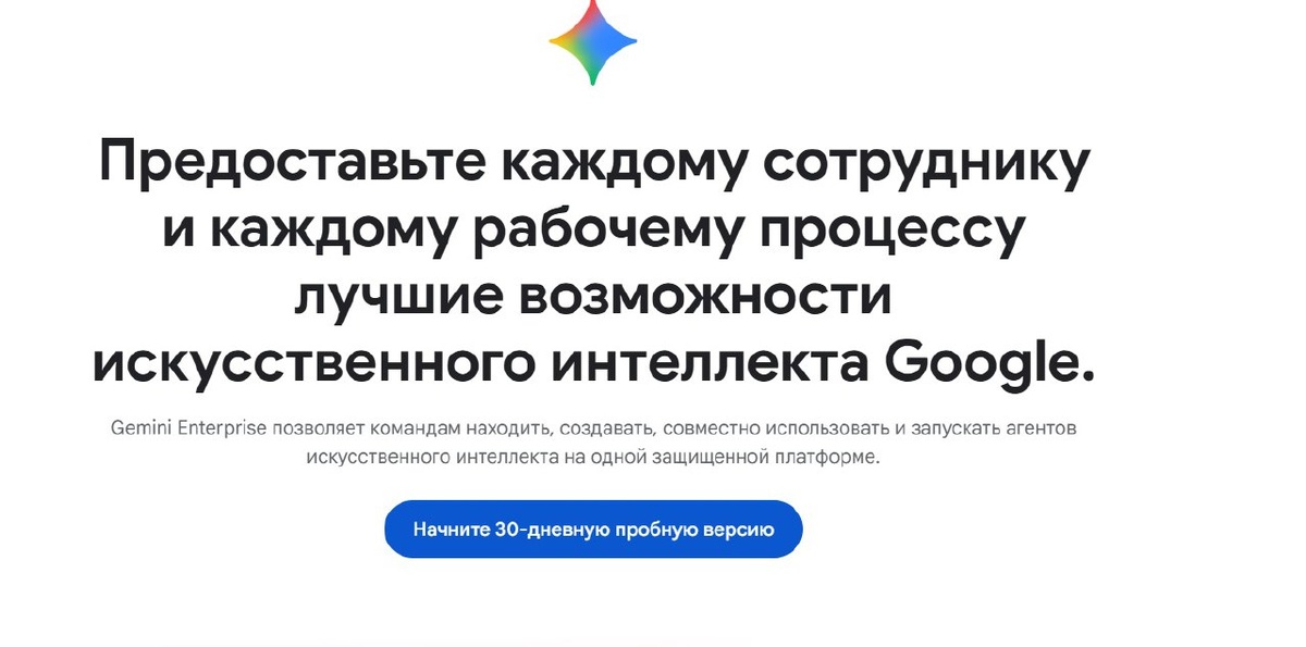 ! 💰 Gemini Enterprise теперь доступен по $21 в месяц. А Google дарит бесплатный пробный период. 🔥 Включено: — Nana Banana Pro (агент для поиска) — Gemini 3 Pro — Veo 3 (генератор видео) 🔗 Как воспользоваться: 1. Переходим cloud.google.com 2. Жмем «Start 30-day trial» 3. Входим через Google-аккаунт 💳 Карта не нужна! 🛞 Кому получилось — пишите "спасибо!" в комментарии. ⚡ Понравился пост? Поставь 🔥!