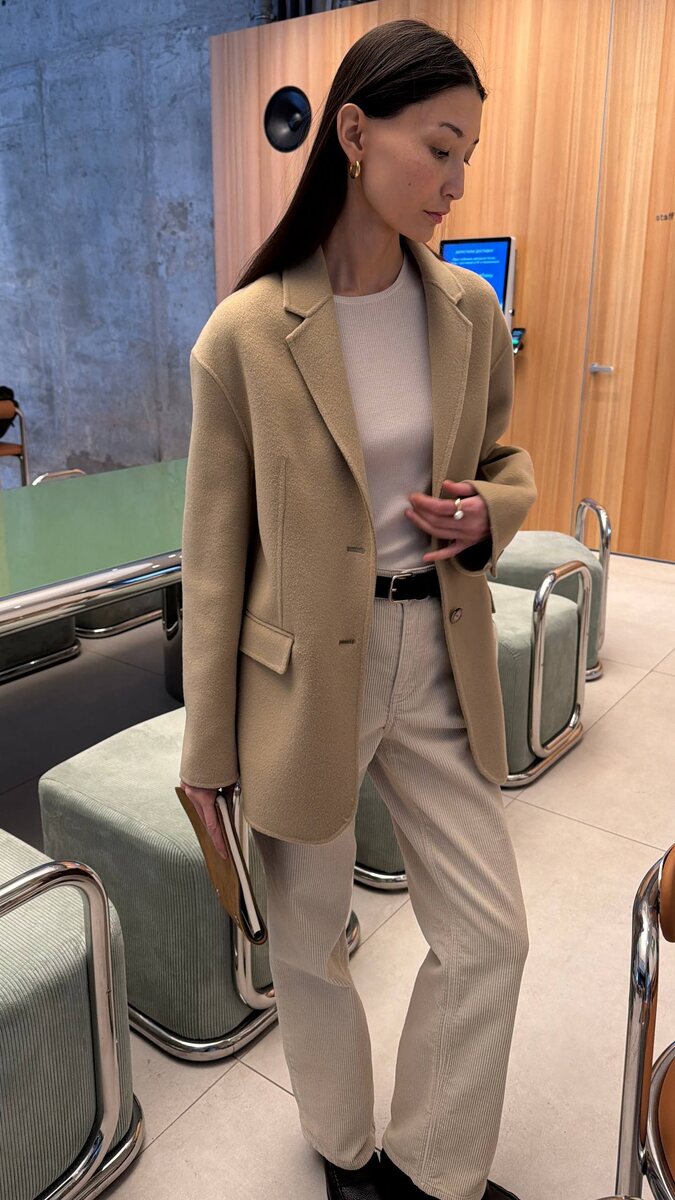 ? Модель можно сочетать с тонким джемпером, брюками из вельвета и лоферами из кожи. Изделие легкое и свободное, создано на основе нашего жакета-бестселлера из мягкой шерсти австралийского мериноса и кашемира из Внутренней Монголии. Пальто можно надеть на прогулку в прохладную погоду или в офис вместо теплого кардигана. Больше идей для образов можно найти на сайте и в приложении 12 STOREEZ 🤍12 STOREEZ