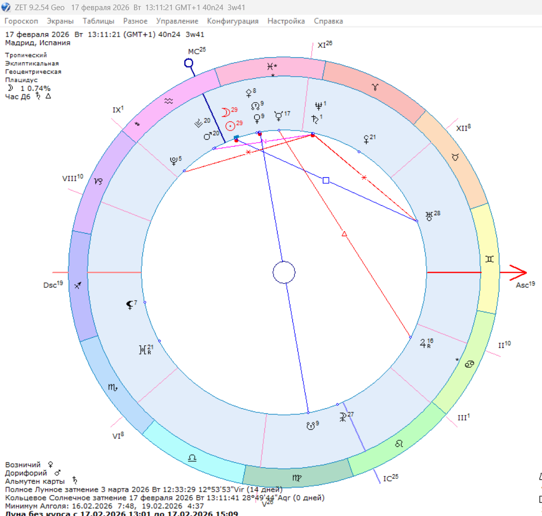 17 февраля состоится Новолуние в 29 гр Водолея, оно станет Солнечным затмением. Это затмение является очень резким, взрывным и неуправляемым по своей природе, так как точка затмения находится в точной квадратуре к Урану в Тельце.