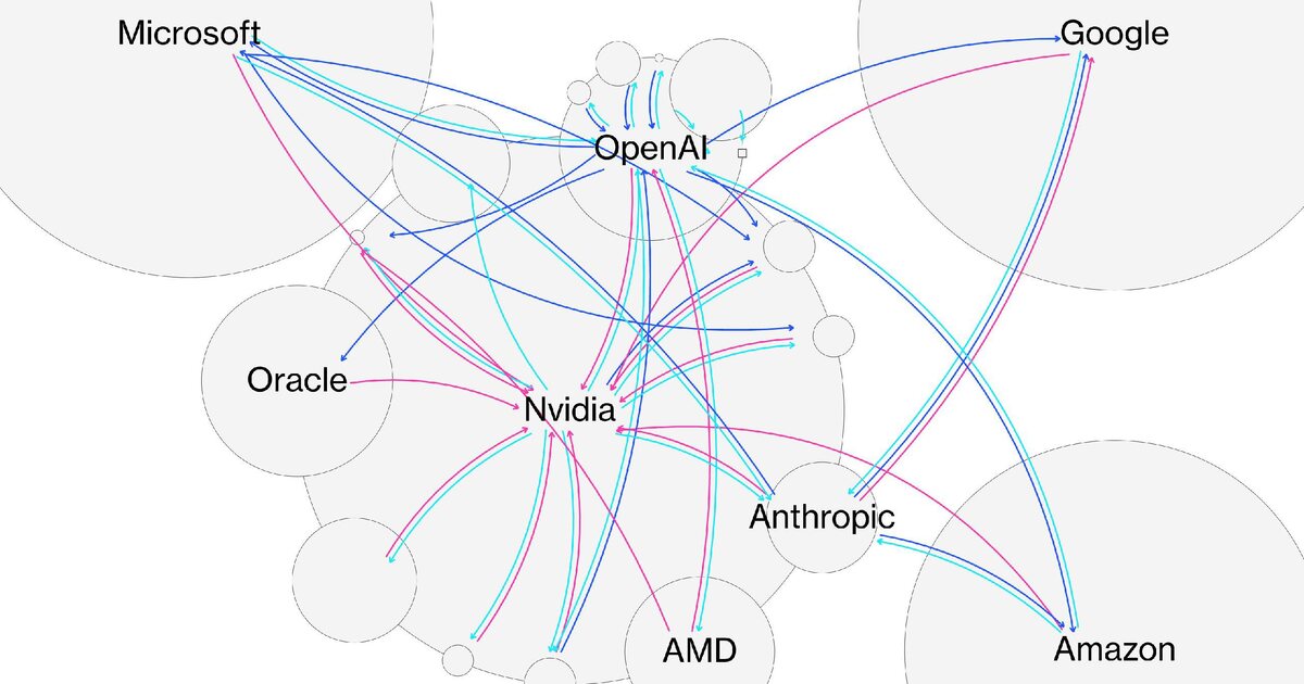 Гайд по «круговым сделкам», на которых держится ИИ-бум Сеть взаимосвязанных инвестиций повышает риск цепных потерь, если ИИ не оправдает ожиданий. Бум искусственного интеллекта начался с ChatGPT, но его финансовую основу заложило партнерство между OpenAI и Microsoft. Эта модель быстро стала стандартом для всей индустрии ИИ. Облачные провайдеры и производители чипов — прежде всего Nvidia — начали инвестировать в ведущие ИИ-стартапы, которые в ответ становились их крупнейшими клиентами. В результате сформировалась плотная сеть взаимных зависимостей между технологическими гигантами и ИИ-компаниями. Риск таких «круговых» сделок в том, что они искажают стимулы и могут привести к плохим управленческим решениям. Если спрос на ИИ не оправдает завышенные ожидания, убытки могут многократно усилиться. Ставки высоки: ИИ-бум втянул колоссальные суммы денег с рынков долга и капитала и поддержал рост сразу нескольких отраслей. 2023 год стал отправной точкой. Microsoft инвестировала более 13 млрд
