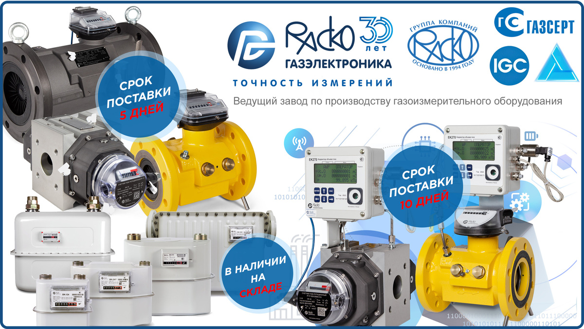 Сокращение сроков поставки счетчиков газа РГ-Р (ротационные), РГ-Т (турбинные) и комплексов учёта газа СГ-ЭК «РАСКО Газэлектроника»