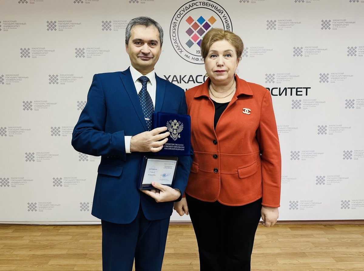 " Завкафедрой химии и геоэкологии института естественных наук и математики Хакасского госуниверситета удостоен звания «Почётный работник сферы образования РФ»👏 Ведомственная награда Министерства науки и высшего образования РФ подчёркивает большой вклад специалиста в развитие системы образования🎓 Сергей Валерьевич – доцент, кандидат химических наук. Работает в университете с 1997 года. Подробнее на сайте 😀ХГУ I Подписаться 💬Одноклассники 📲 Rutube 📝 Дзен 📲ВКонтакте 👻 MAX #ХГУ #вуз #khsu #наука