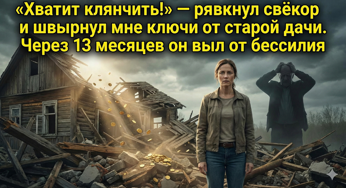 — Сюрприз, невестка! — крикнул свёкор, хлопая дверцей. — Решил я тебе помочь. Чё ты тут ковыряешься в этой гнили? Я с мужиком договорился, он за пару часов этот скворечник снесёт, разровняем площадку, и выставим участок на продажу. Тут место хорошее, под коттедж за полтора миллиона уйдёт. На машину вам добавим!