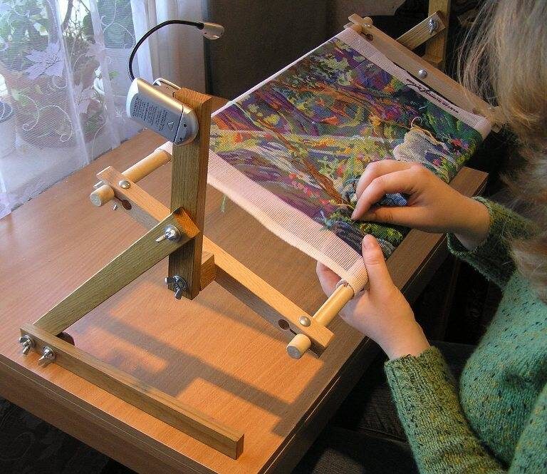 - Размер и тип вышивки: Для больших гобеленов лучше подойдут напольные или валиковые станки. Для небольших картин и салфеток достаточно настольного или даже ручного станка.