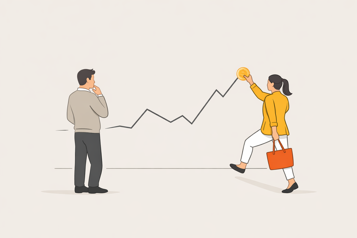 Почему «ещё чуть-чуть подожду» убивает твою прибыль Мы все в это верим: есть какой-то волшебный момент, когда акция упадёт до самого дна, золото станет дешевле именно завтра, а биткоин вот-вот рванёт вверх. И кажется логичным немного подождать, правда? Но на деле эта привычка обходится инвесторам дороже всего. Давайте разберёмся, почему постоянное откладывание съедает твою прибыль и как из этого выбраться. Мы любим себя обманывать Наш мозг обожает чувствовать контроль над ситуацией. Когда дело касается денег, желание поймать «тот самый момент» становится манией. Мы смотрим на графики до рези в глазах, читаем все новости, слушаем аналитиков, перепроверяем каждую мелочь. Вот только рынок непредсказуем. И он точно не будет тебя ждать. Идеальной точки входа просто не существует. Все твои «ещё денёк подожду» на самом деле — это просто упущенные деньги. Реальная история: акция растёт по 5% в неделю, а ты ждёшь «своего момента». Проходит неделя — цена уже на 15% выше, а ты всё ещё думаешь. Т