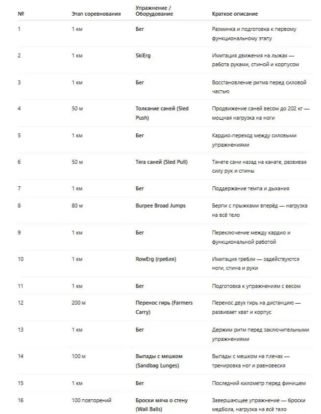 Организаторы называют его «мировой серией фитнеса», и не зря, поскольку в каждом забеге участники проходят 8 раундов по 1 км бега, между которыми выполняют функциональные упражнения.