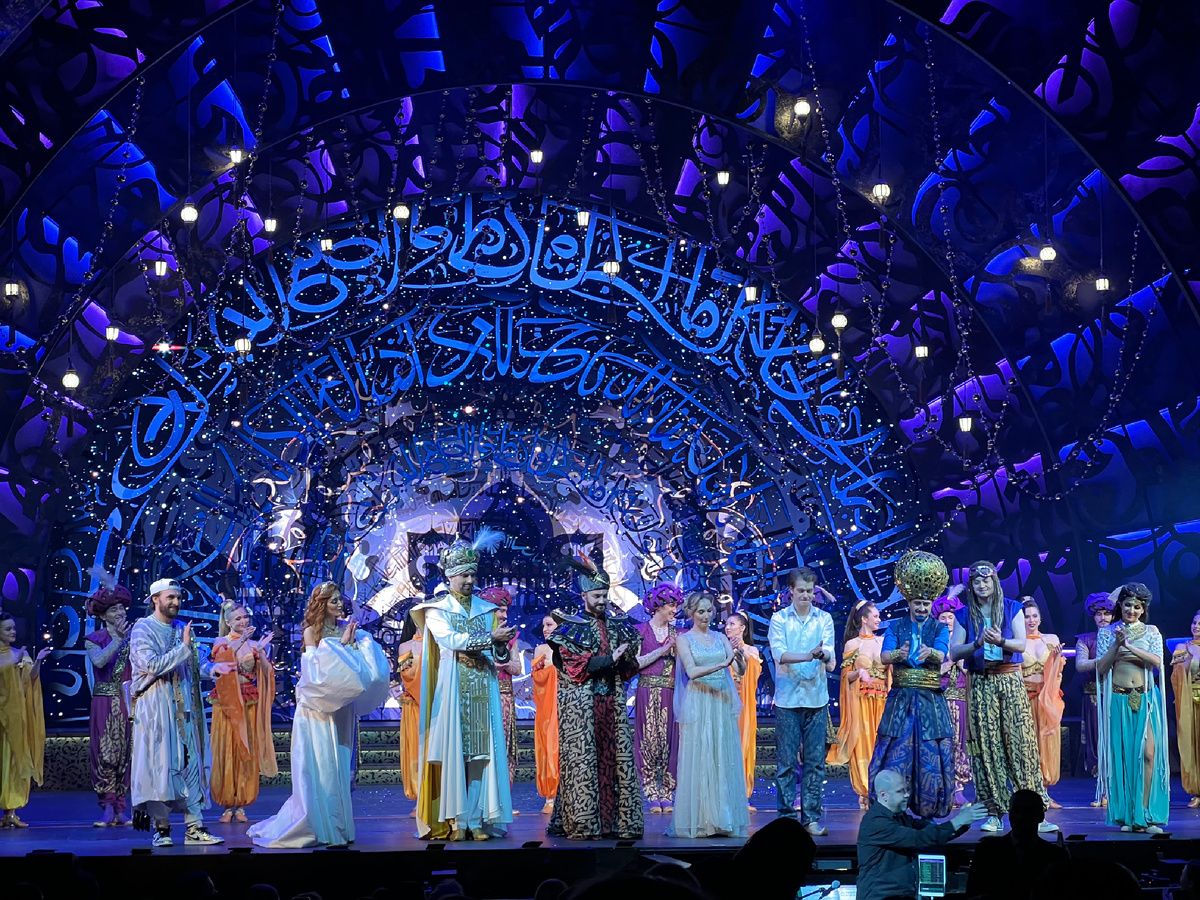 Поистине волшебные завораживающие декорации. Яркие, интересные и, временами, неожиданно современные (при этом отлично вписывающиеся в общую концепцию Волшебного Востока) костюмы. В этом постановкам театральной компании Бродвей Москва, на мой взгляд, нет равных. Настолько эффектную запоминающуюся картинку редко где встретишь.