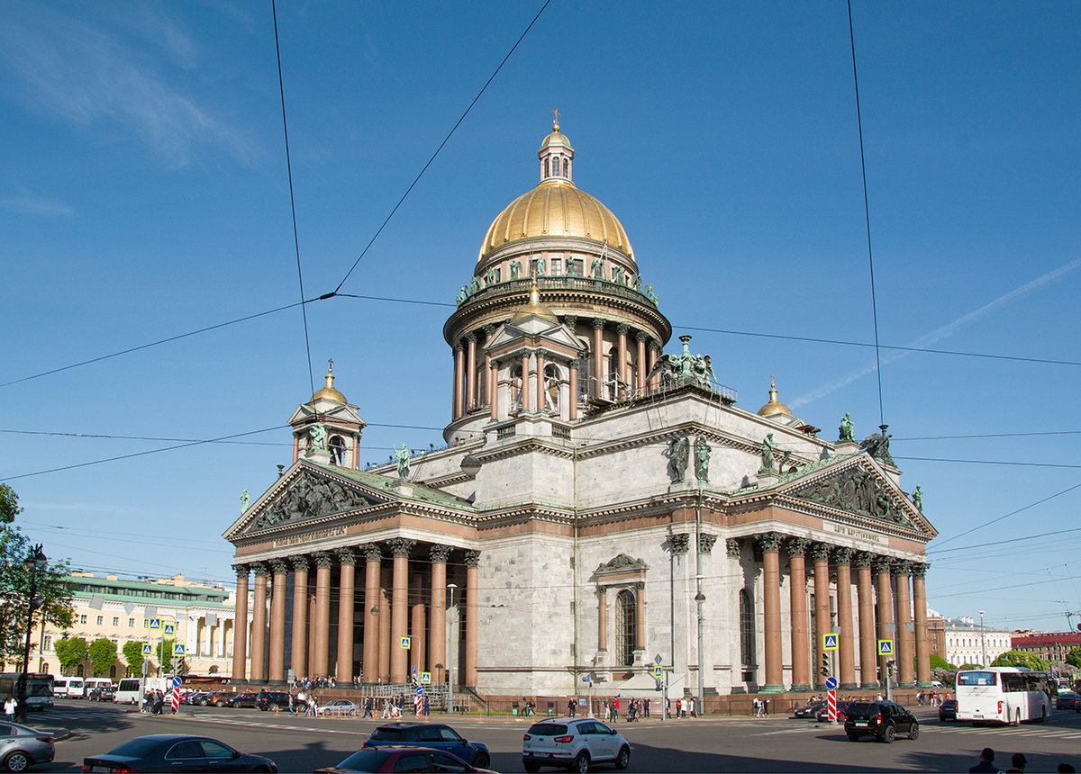Недавно исполнилось 240 лет со дня рождения выдающегося архитектора Огюста Монферрана. Его работы стали одними из главных символов Санкт-Петербурга. Самое известное творение Монферрана – собор, построенный в честь святого Исаакия Далматского, Исаакиевский собор. Этот собор стал самым дорогим собором, построенным в XIX веке. В переводе на современные деньги его строительство стоило несколько миллиардов долларов. Строительство собора шло 40 лет: с 1818 по 1858 г. 48 колонн нижнего портика храма изготовлены из цельных кусков гранита. Вес каждой колонны – 114 тонн. Для строительства собора архитектор использовал кирпич, камень, чугун и сталь. Купол собора основан на трех оболочках из чугунных деталей. Высота собора 101,5 м, длина 111,2 м, ширина 97,6 м. Внутреннее убранство собора: Сейчас собор является одновременно и действующим храмом и музеем. Бюст Монферрана, установленный в музейной части собора: На колоннаде собора устроена смотровая площадка, на которую можно подняться за небольшую