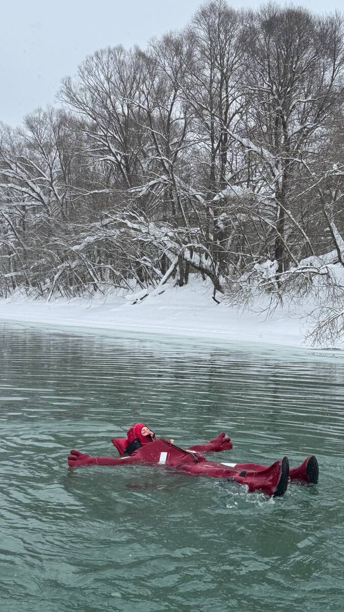 Видео людей в красных гидрокостюмах я видела в течении последнего года много раз. И очень хотела попробовать этот Айс флоатинг, но потом женщину утащило течением в океан в Мурманске. И желание стало бороться со страхом. Но мы в Казани и тут река, а не океан — сказал мне мой мозг и я пошла искать ребят, которые это все организовывают. Нашла — это Будем знакомы. Подговорила отчаянную подругу и в самый снегопад мы отправились на Голубые озера. Сам костюм оказался очень неподвижным, его основная цель шесть часов держать человека на воде в случае крушения судна. Не холодно! Это самое частое, что меня спросили. За 30-40 минут замерзнуть в этом костюме нереально. Второе — как вас не унесло. Ребята, это Казанка. Да, течение тут есть но оно минимальное. С нами был инструктор на сапе и если бы надо было помочь он догнал бы нас мигом. Потом у нас был оргазм момент снятия костюма и чаепитие. Готова ли я повторить? Да! И хочу снова пойти с девчонками. По деньгам это стоит 3500₽, территориальн