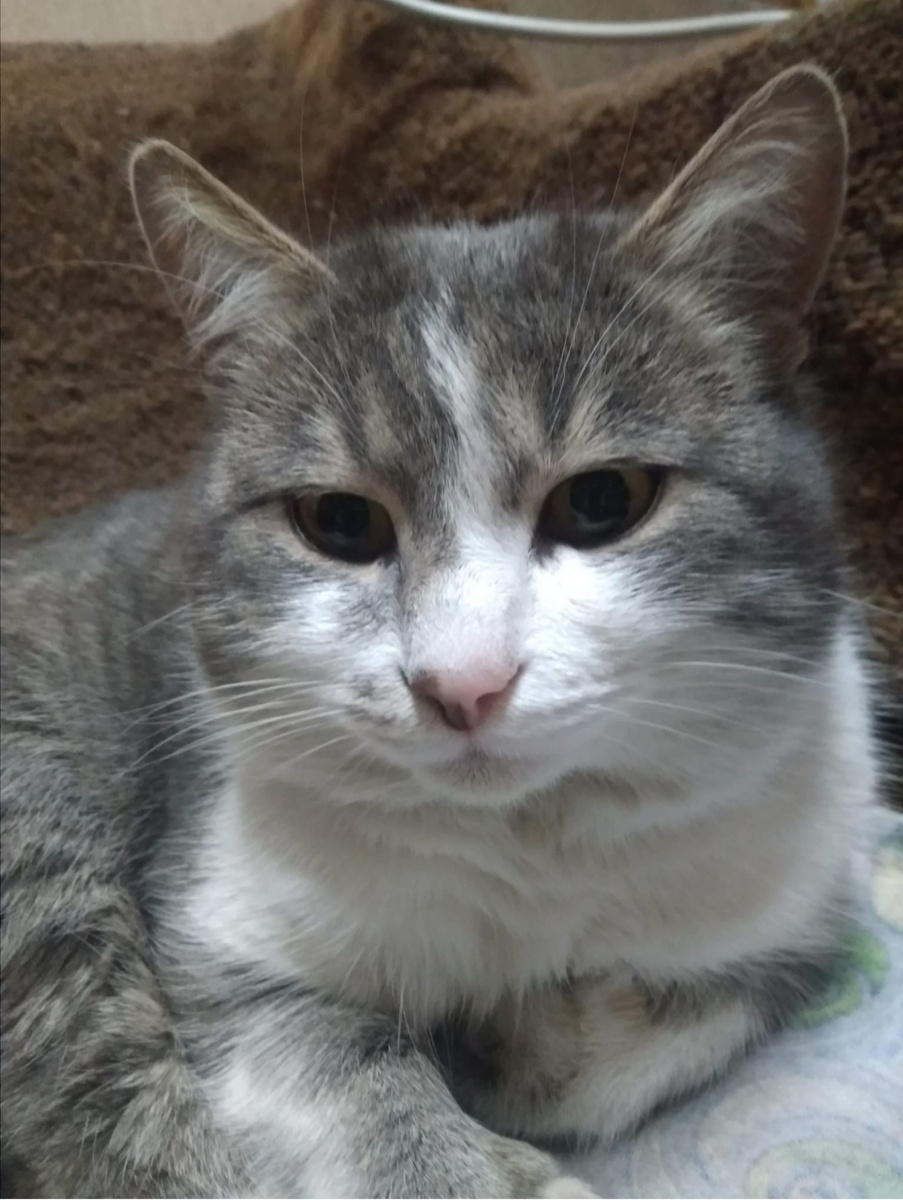 Афоня - кот обычный и необычный одновременно. Серый, с нарядным белым воротничком, мордочкой и носочками. Три года назад Оксана встретила Афоню, а Афоня - Оксану. Эпично, но встреча произошла на помойке... Кот притаился возле мусорного бака. И недовольно оглянулся на подошедшую к мусорке Оксану. Тут из-за бака выскочила и побежала прочь огромная крыса. Кот набросился на неё. Оксана кинулась помогать коту: пыталась пнуть тапкой крысу. Одновременно кричала незнакомому коту: -Не кусай её! Она заразная! Непонятно, кому помогла Оксана, но крыса убежала, прихрамывая. Потому что женщина схватила-таки кота на руки. Ведро бросила, а кота схватила. Смело, конечно. В пылу схватки могла и пострадать... Но Афоня (тогда еще безымянный) ловко втянул когти. И уставился на Оксану с весьма недовольным лицом... Так Афоня стал домашним котиком, "плюшечкой", "пирожочком", "маминой радостью" и т.д. Но некоторые повадки "дикаря" остались. Кот обожает устроить засаду где-то сверху. И оттуда уже может потрога