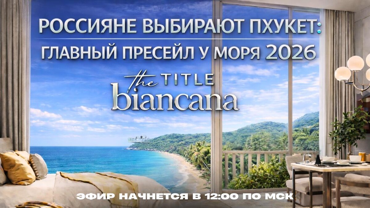 ! ▶️ Через 15 минут мы начинаем прямой эфир - "Россияне выбирают Пхукет: главный пресейл у моря 2026 - проект Biancana". 🔵Поговорим о возможностях, которые открывает этот пресейл. 🔵Покажем, в каком виде покупатели получают свои квартиры от застройщика. Вот ссылка для всех, кто не успел заранее зарегистрироваться - 👉 Смотреть прямой эфир Присоединяйтесь ⬆️