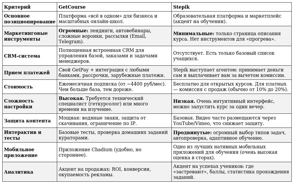 Сравнительная характеристика Getcourse и Stepik