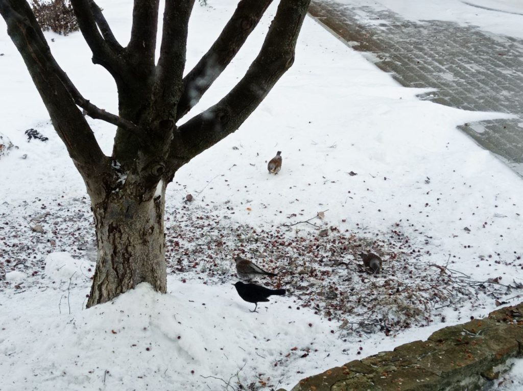 Дрозды прилетели на завтрак. Хутор Гусев.