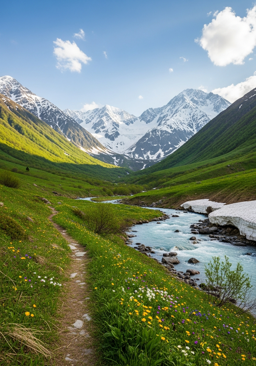Дзыхринское ущелье — одно из самых живописных и при этом малолюдных мест в окрестностях Красной Поляны. Весна — идеальное время для визита: водопад набирает полную силу от талого снега, а реликтовый лес покрывается свежей зеленью.