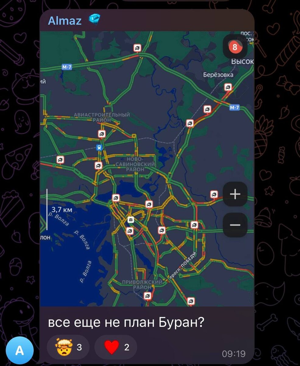Напомним, что этим утром город встал в 10-балльных пробках. Родители учеников писали в чат мэрии сообщения о том, что им пришлось добираться до школы дольше обычного. Более того, многие не смогли подъехать к самому учебному корпусу. «Посёлок Вишневка, сегодня в 6.25 вызвала такси с двумя детьми, за 40 минут мы еле проехали ул.Большая и часть ул. Усердная и встали в мертвую пробку. Навигатор с 39 примерно го времени до конечной точки (школа, садик, работа) сначала увеличил время до 55 минут, потом на полтора часа, когда дошло до отметки 2ч40минут мы просто отпустили машину (1200р при этом списалось) и пешком с 2мя детьми по нечищеной дороге 2км шли домой, от встречных и попутных машин отходя в сугробы», — пишет одна из жительниц. Также люди жалуются, что казанские дворы завалены мусором, поскольку из-за сугробов мусоровозы не могут подъехать к площадкам с контейнерами. ⭐️ Татарстан News 📲 Татарстан News в MAX