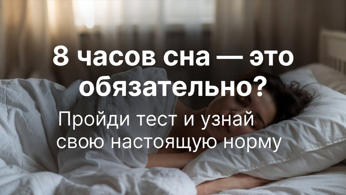 Сегодня разберём главный миф 2026 года: «Всем обязательно 8 часов». И докажем, что твоя норма может быть и 6, и 9 — главное её узнать.