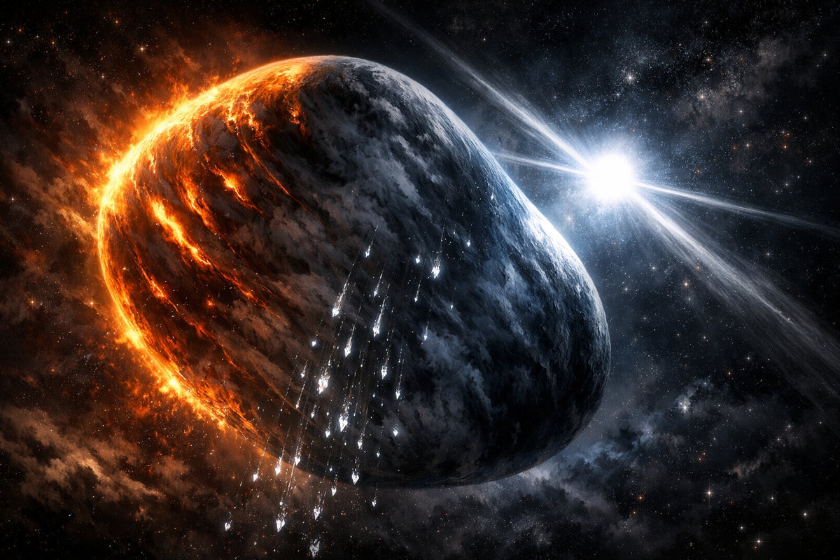 Но конец иной. Алмазы не испаряются. Они падают сквозь слои, пока не достигают плотных недр, возможно, формируя алмазное ядро. PSR J2322-2650b — гигантское алмазное месторождение, пополняемое из своей же сажевой атмосферы.