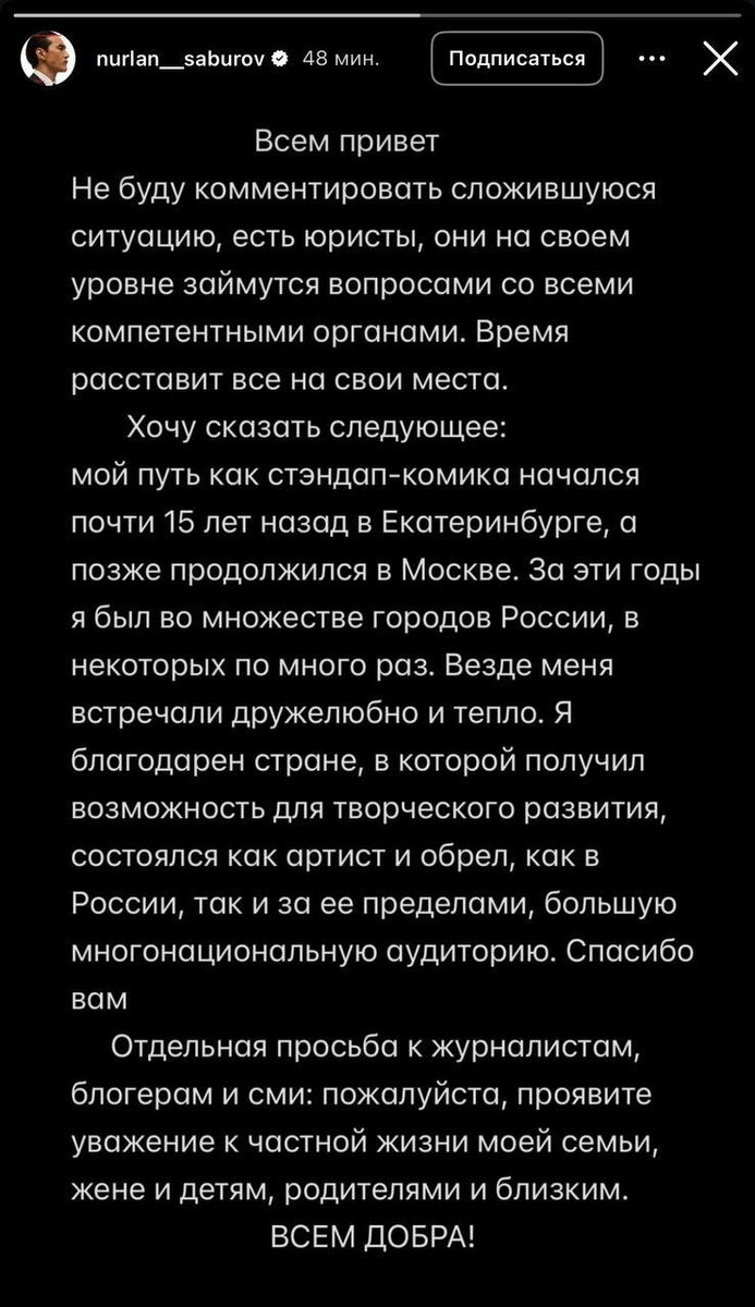 Нурлан Сабуров прокомментировал ситуацию с запретом на въезд в Россию.