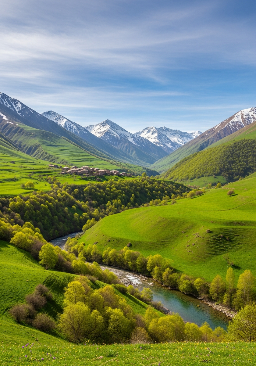 Бирюзовая гладь воды в окружении высоких гор — Ирганайское водохранилище выглядит как фьорд, перенесённый с норвежского побережья в самое сердце Дагестана. Весной склоны покрываются цветущими лугами и фруктовыми садами, и пейзаж становится по-настоящему открыточным.