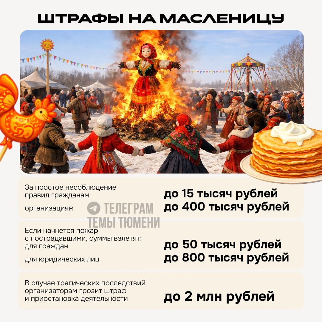 Масленичная неделя начнётся 16 февраля. Эксперт Общественной палаты предупреждает — специального штрафа за сам обряд нет, но есть суровое наказание за нарушение правил пожарной безопасности — о нем смотрите в карточке. А вы будете жечь на масленицу? 🔥 — конечно! 😁 — пока жгу только дедлайны. ❤️ Подписаться | Предложить новость | Дать «буст» | Мы в МАХ