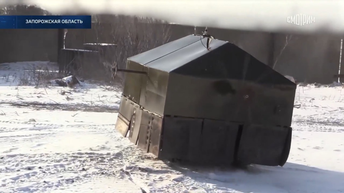 Российский НРК с экспериментальной защитой от беспилотников, представляющей собой вентиляторы с вращающимися тросами, которые теоретически