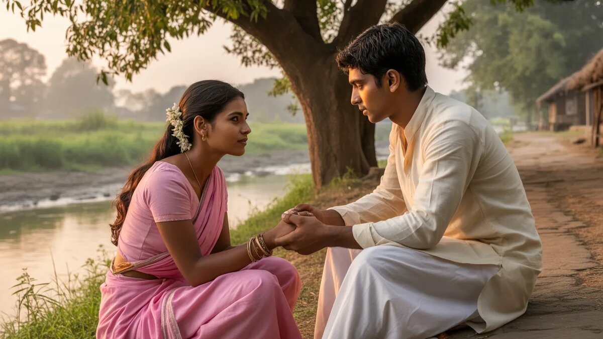 Они шли рядом к её дому, Девдас нёс кувшин. Деревня погружалась в вечернюю тишину. Где-то мычала корова, возвращающаяся с пастбища. Женщины зажигали масляные лампы в домах. Дети бегали последние игры перед ужином. Всё было привычно, спокойно, вечно.