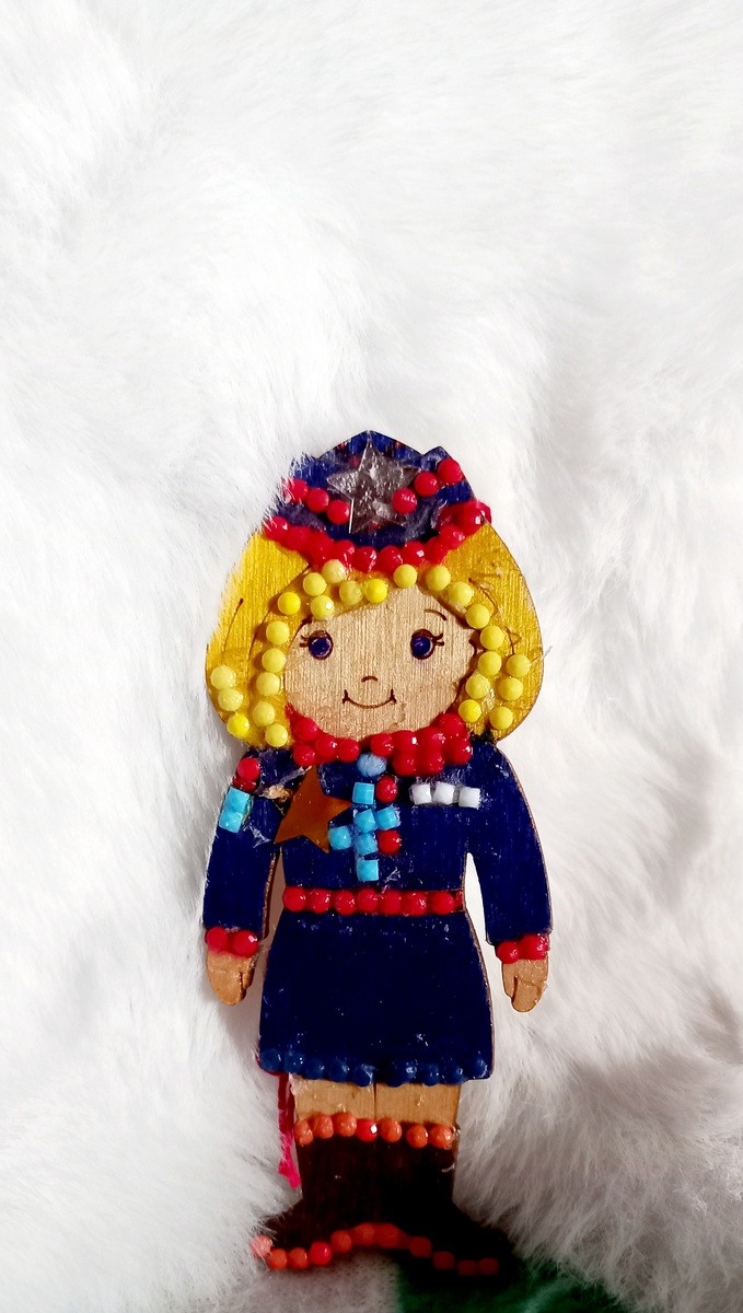 Я расписала её сама. Причёску, пилотку, галстук, карман, воротник, сапожки и юбку я украсила алмазной мозаикой.