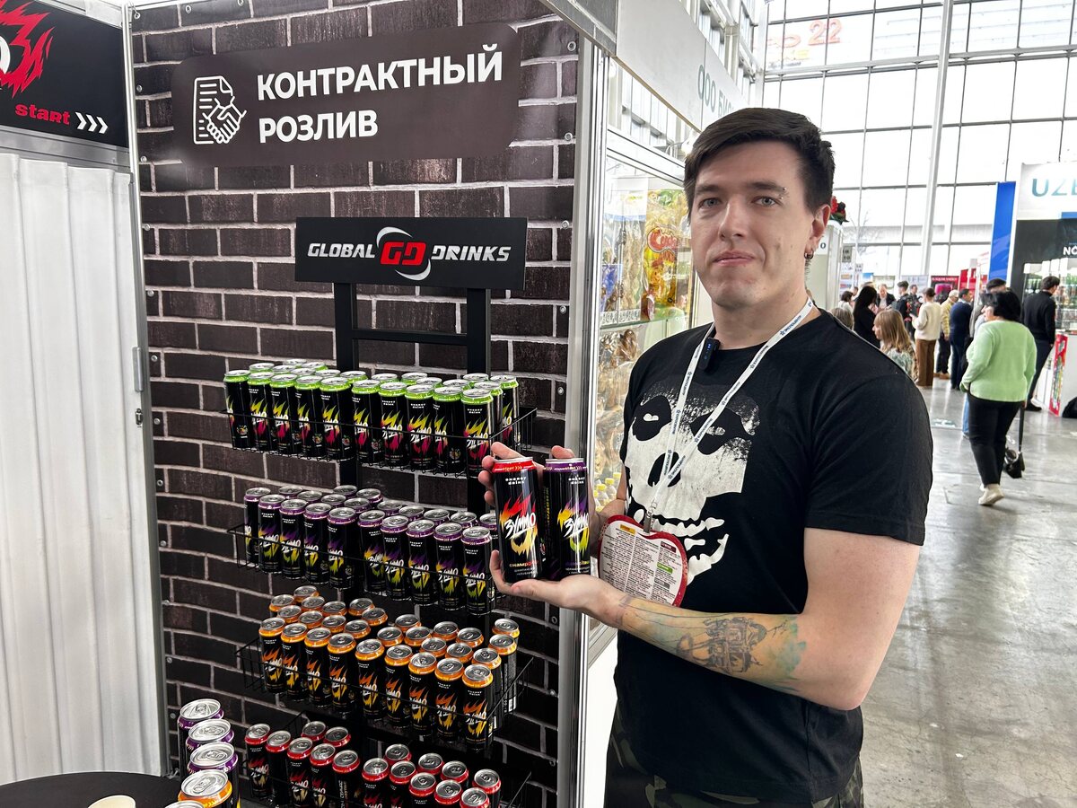 Прямо "через дорогу" мы заметили стенд с новым энергетиком Зуммо! Интересно, есть ли в названии отсылка на старую игру про жабу с шариками