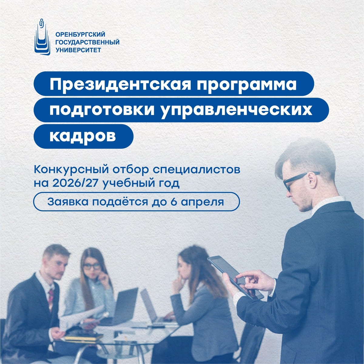 👤 Открыт приём заявок на обучение по Президентской программе подготовки управленческих кадров 2026/27. Программа направлена на развитие перспективных специалистов, готовых к решению сложных управленческих задач. Основные требования к кандидатам: – возраст до 50 лет (возможность исключения — ходатайство региональной комиссии); – высшее образование; – общий стаж работы — минимум 5 лет; – опыт работы на руководящих позициях — минимум 2 года; – участие в проектах развития организаций. Важно: победители конкурса «Лидеры России» включаются в программу автоматически. Финансовые условия: 📼 66% стоимости обучения — государственное финансирование; 📼 34% — оплачивает работодатель или сам специалист. После успешного окончания программы у тебя будет возможность пройти стажировку в крупных российских и международных компаниях. Зарегистрируйся на сайте: program.pprog.ru до 6 апреля 2026 года. 💬 Чат региональной комиссии в Telegram: clck.ru/3RhMZc 👥 Официальная информация на сайте Министер