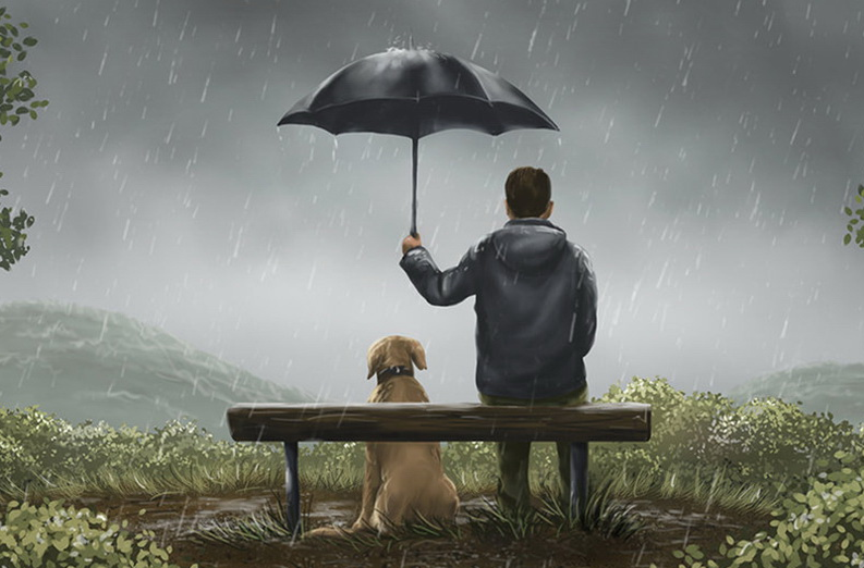 Перелом случился в дождь. Холодный, осенний, со льдинками. Мама, выглянув в окно, чтобы позвать Тиму на ужин, увидела такую картину: её сын сидит на мокрой скамейке под зонтиком. И под этим же зонтиком, прижавшись к его ногам, лежит та самая собака. Они были похожи на одинокий, но цельный островок тепла посреди хлёсткого потопа. У Тимы был такой спокойный и взрослый вид, словно он охранял самое главное сокровище на свете.