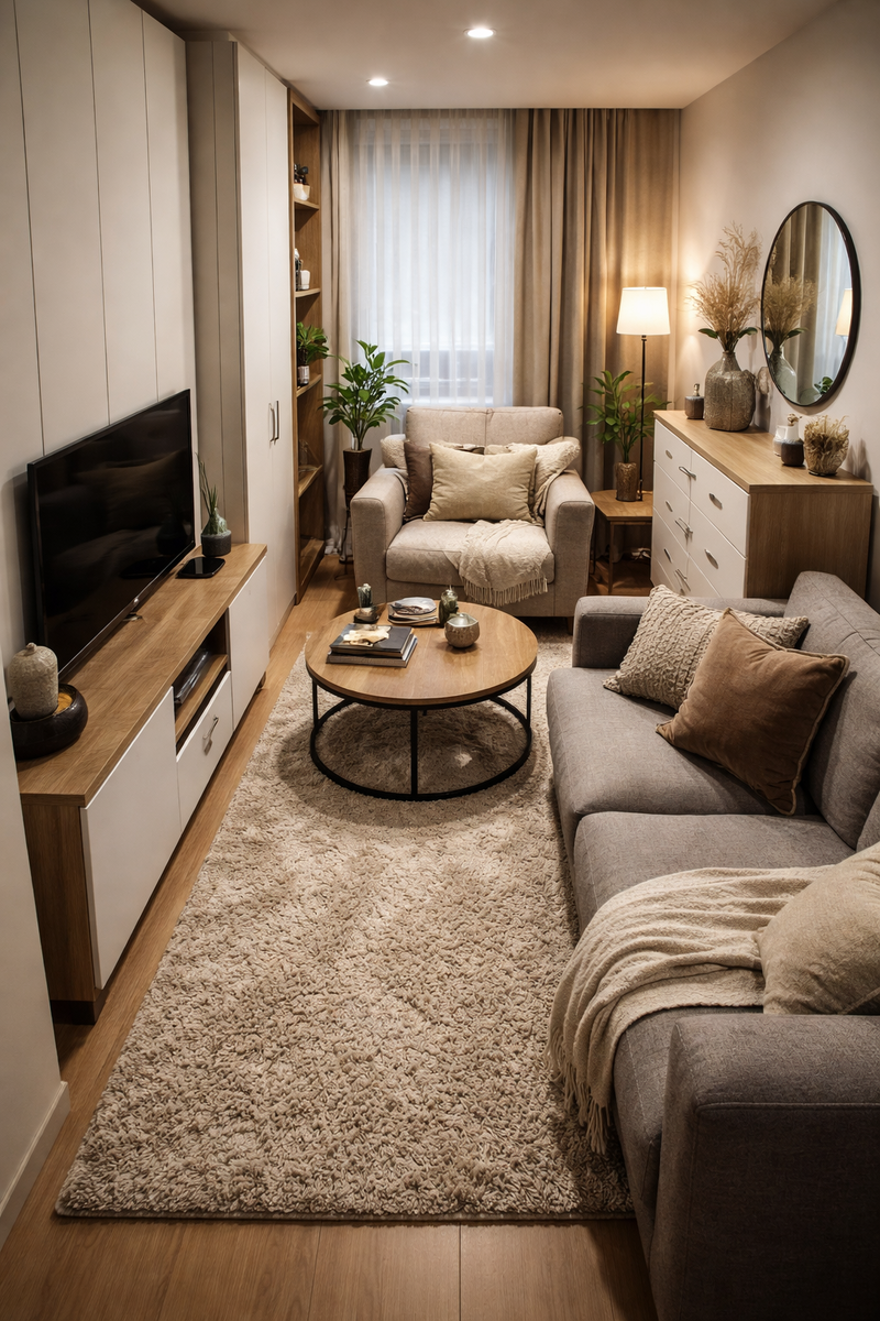 ✔️ В маленьких пространствах свет — это инструмент зонирования: