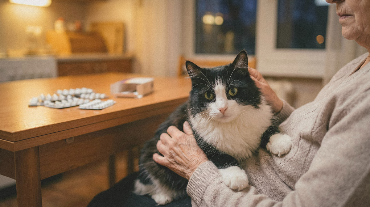 Муся сидела на столе. Прямо рядом с ящиком для лекарств. А вокруг неё лежали блистеры — штук пять, может, шесть. Все разные. Кошка смотрела на них зелёными глазами и облизывалась.