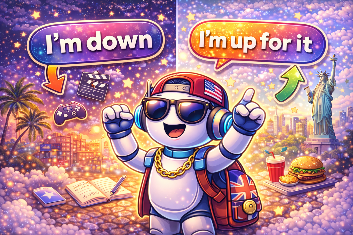 Вы когда-нибудь слышали фразы "I'm down" или "I'm up for it" и не могли понять, что они значат? Эти выражения — настоящие хитрости американского английского, которые часто используются в повседневной жизни. Давайте разберемся, что они действительно означают! 🤔 'I'm down' Эта фраза означает "Я согласен" или "Я готов". Например, если кто-то приглашает вас на вечеринку и говорит: "Let's hang out later", вы можете ответить: "I'm down!" Это значит, что вы согласны на предложение или хотите присоединиться к мероприятию. 💡 'I'm up for it' Эта фраза также выражает готовность, но немного в другом контексте. Она переводится как "Я готов к этому" или "Мне это нравится". Например, если кто-то предложит поиграть в настольную игру, вы можете сказать: "I'm up for it!" Это означает, что вы готовы и хотите это сделать. 🔄 Как понять разницу? Обе фразы означают готовность или согласие, но "I'm down" чаще используется, когда вы хотите показать готовность к чему-то неожиданному или непринужденному, а "I