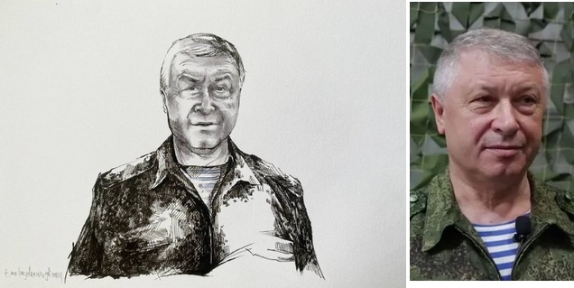 На этот раз – из-за почти удачности покушения на генерала Алексеева. – Ведь всё-таки некая удача: теракт совершён, настроение у граждан озлобленное на власть, которая на 5-й год войны не может организовать проживание ключевых фигур в армии таким, которое б исключало теракты против них в принципе. – Вот изовредитель, Букша, и шевельнулся опять. Кроме критикуемой всегдашней российской безосновательности (авось да небось – выйдет, хоть брось), выражаемой всегда единообразно – недоведением рисунка до края листа, где начинается рамка в музейных экспозициях, в этот раз портретное сходство использовано для снижения образа генерала. Он в жизни юморной, а на рисунке – придурковатый. Улыбчатый прищур глаз исчез. Вместо него – заплывшие маленькие глазки старикашки. Сильнее, чем у оригинала, поднятые брови выражают некую старческую неадекватность. То же с губами. Словно ему только что нечто смешное рассказали, и он стал туго до сути доходить, загодя начиная улыбаться, чтоб его не застукали в недоу